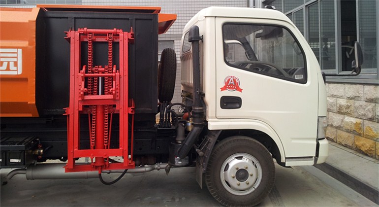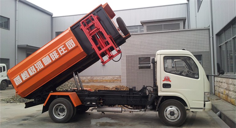 工作原理:自裝卸式垃圾車是由密封式垃圾廂、液壓系統(tǒng)、操作系統(tǒng)組成,能配幾十個(gè)垃圾桶,實(shí)現(xiàn)一車與多個(gè)垃圾桶聯(lián)合作業(yè),廂體上的液壓升降裝置可將垃圾桶吊上、放下,上下升降,上下一次工作循環(huán)時(shí)間為50S,密封式廂體環(huán)保衛(wèi)生,可避免二次污染。其自裝式的掛桶裝置可直接將路邊的垃圾桶掛在上面用提升機(jī)直接到在垃圾箱體里面省去了裝垃圾的麻煩。