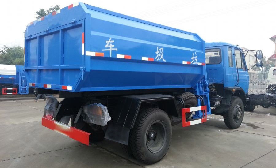 工作原理:自裝卸式垃圾車是由密封式垃圾廂、液壓系統、操作系統組成,能配幾十個垃圾桶,實現一車與多個垃圾桶聯合作業,廂體上的液壓升降裝置可將垃圾桶吊上、放下,上下升降,上下一次工作循環時間為50S,密封式廂體環保衛生,可避免二次污染。其自裝式的掛桶裝置可直接將路邊的垃圾桶掛在上面用提升機直接到在垃圾箱體里面省去了裝垃圾的麻煩。