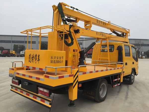高空作業車采用國產、進口換向閥及液壓油缸,換向平衡,操作靈活方便,支腿與工作臂互鎖,支腿與工作臂互鎖,防止誤操作過位。對高空作業車有特殊要求的用戶請致電本公司,我們可以為用戶定單設計、改裝。可加裝電控系統。 高空作業車采用原裝底盤,平頭 ,可容納更過的作業人員。性能穩定可靠,主要用于電氣線路檢修、高空作業清洗、樹木剪枝等高空作業使用。