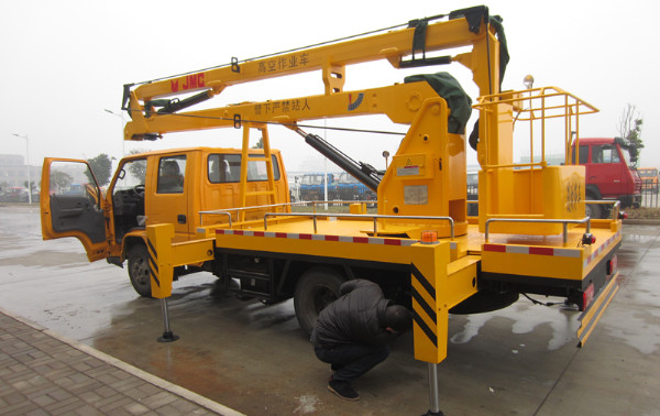 高空作業(yè)車(chē)采用國(guó)產(chǎn)、進(jìn)口換向閥及液壓油缸,換向平衡,操作靈活方便,支腿與工作臂互鎖,支腿與工作臂互鎖,防止誤操作過(guò)位。對(duì)高空作業(yè)車(chē)有特殊要求的用戶(hù)請(qǐng)致電本公司,我們可以為用戶(hù)定單設(shè)計(jì)、改裝。可加裝電控系統(tǒng)。 高空作業(yè)車(chē)采用原裝底盤(pán),平頭 ,可容納更過(guò)的作業(yè)人員。性能穩(wěn)定可靠,主要用于電氣線(xiàn)路檢修、高空作業(yè)清洗、樹(shù)木剪枝等高空作業(yè)使用。