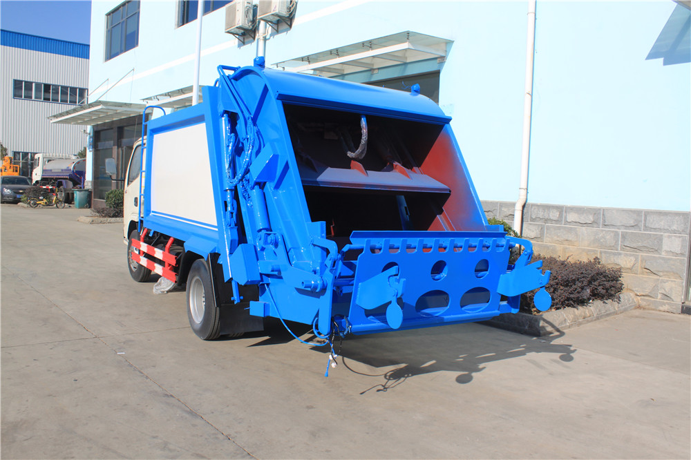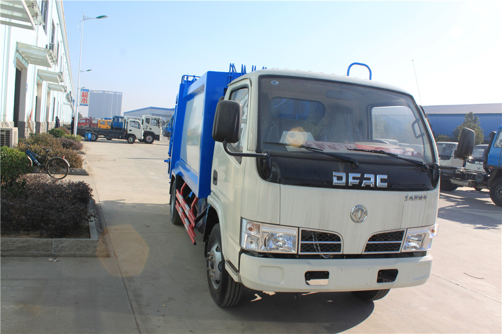 東風銳鈴壓縮式垃圾車上裝配置:有效壓縮容積5方,可裝4-5噸生活垃圾,壓縮倍率3-4倍,壓縮后生活垃圾密度從0.36變為0.95以上,帶污水收集箱,新款平板式箱體更美觀,尾部 帶密封橡膠墊,可防污水滴漏二次污染。尾部可帶翻轉斗或掛桶裝置,可選裝PLC一鍵操控系統,駕駛室和尾部雙操控機構。