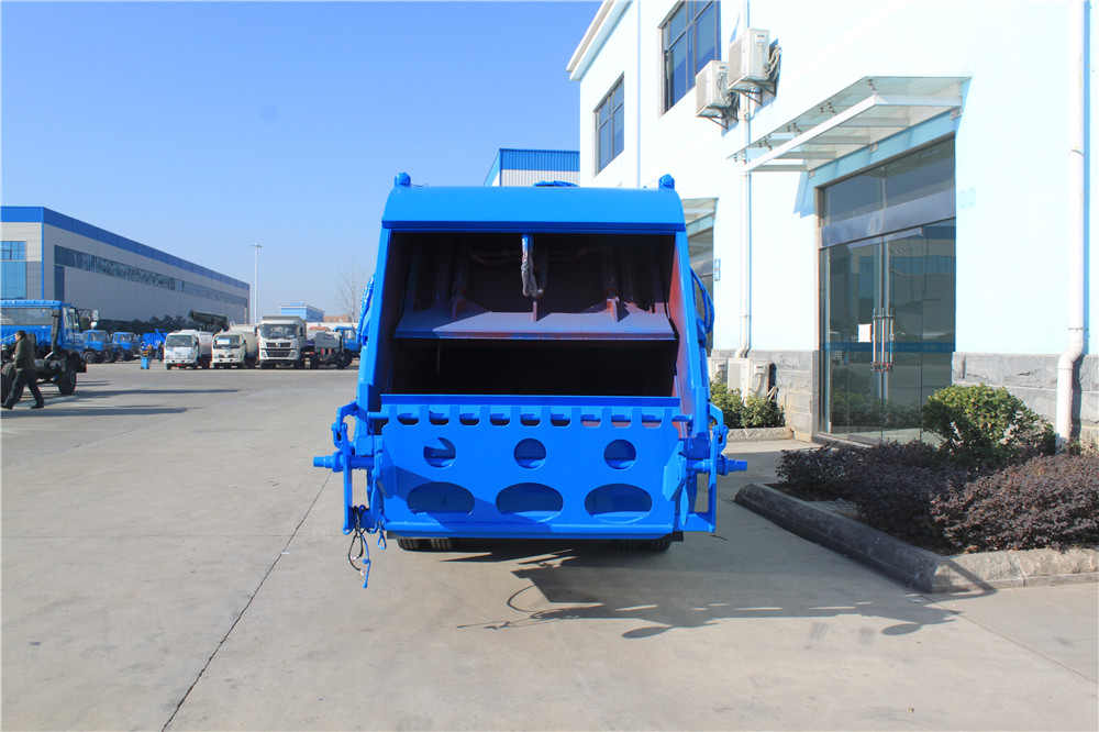 垃圾箱體邊采用3mm碳鋼板,底板采用4mm碳鋼板,箱體容積4.0-5.0(標準容積)方米,箱體打骨架加強,后推板式垃圾箱(選擇安裝掛桶翻轉機構或垃圾斗翻轉機構);